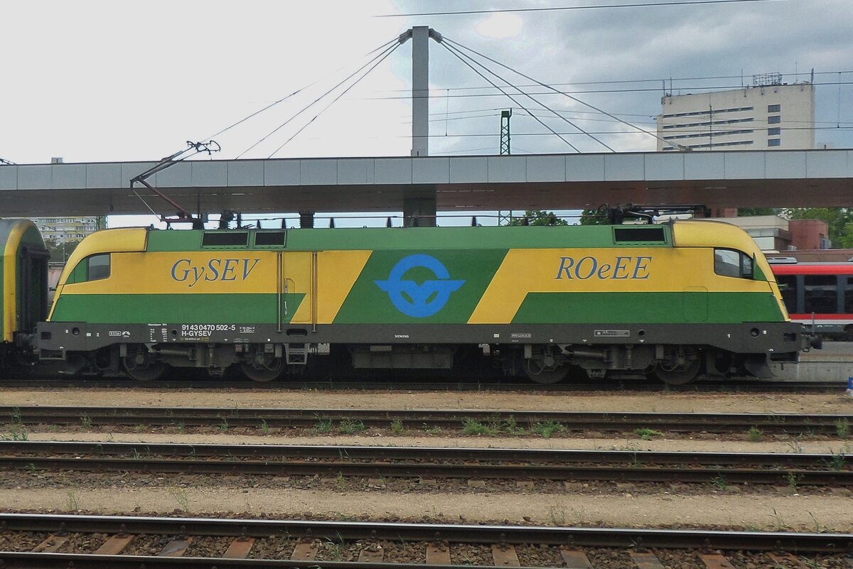 Seitenblick auf GySEV 470 502 in Kelenföld am 6 Mai 2026. Die 470 502 ist die einzige Gysev-Taurus der immer noch keine Vollwerbung bekommen hat.